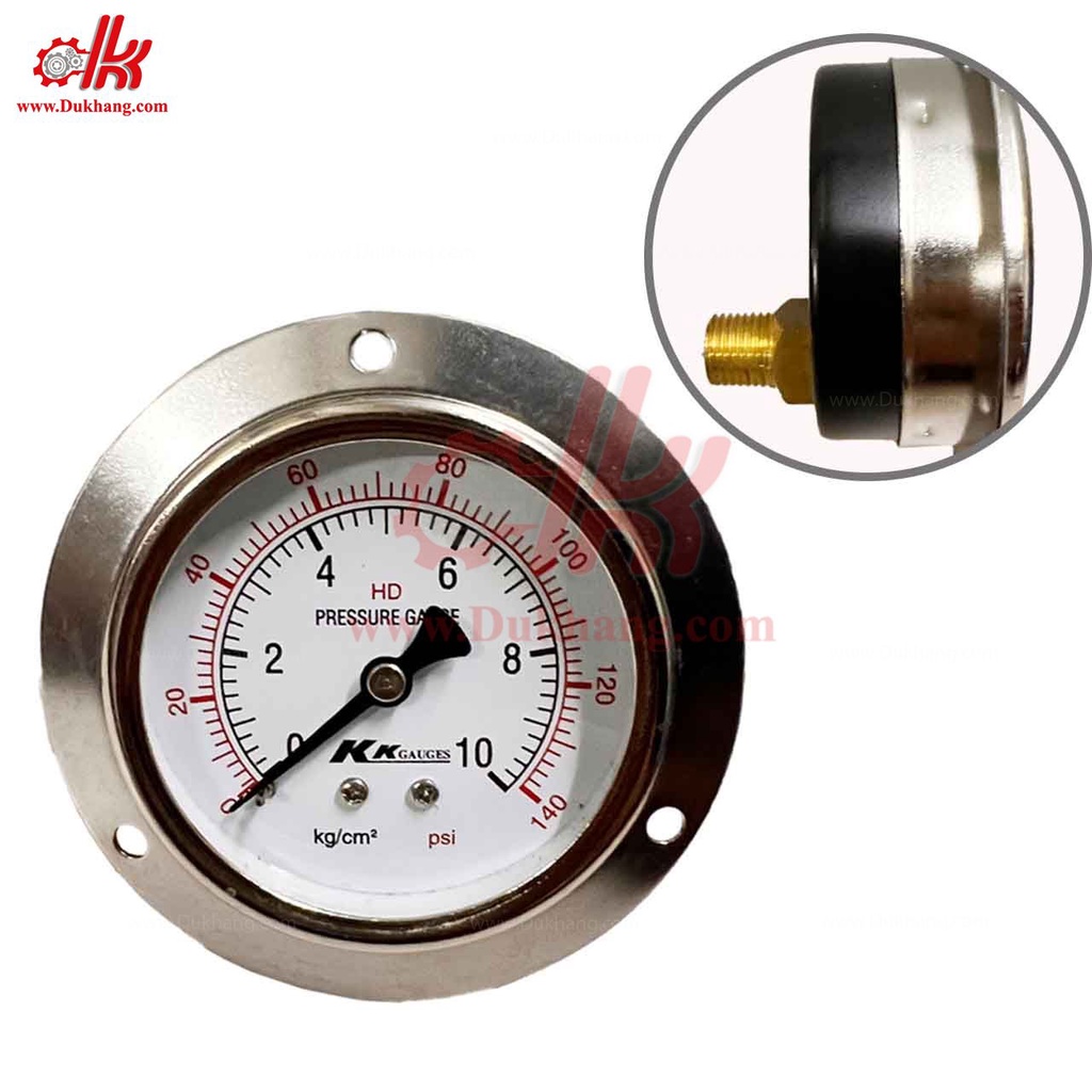 Đồng hồ đo áp suất hơi, khí, nước chân sau - Đồng hồ áp lực KK gauge chân ren sau -1kg,10kg,15kg free ship